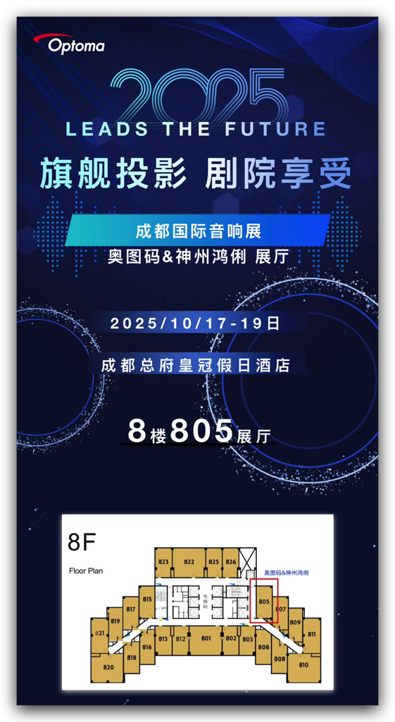 奥图码诚邀您莅临参观,体验奥图码旗舰机型带来的私人剧场般享受,以及最新家庭影院投影带来的视觉盛宴。10月17日-19日,我们成都国际音响展8楼805展厅,不见不散..