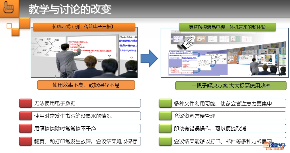 无线触摸一体机搭载WIFPTV无线传输系统的,改变了传统的电子白板加投影机的演示方式,解决了以下烦恼: