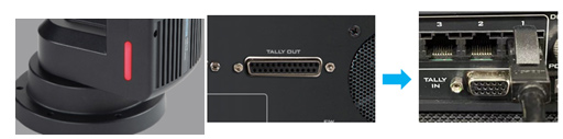 在多机位的运用过程中,TALLY信号灯用途也非常重要,小编把切换台TALLY输出连接RMC-180或者RMC-300A TALLY输入,PTR-10 MARK II的TALLY灯就可以跟随切换台而切换。测试TALLY控制也是顺利通过。