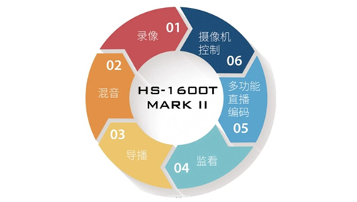 一、录像;二、混音;三、导播信号切换;四、多画面监看;五、多功能直播编码;六、摄像机控制。
