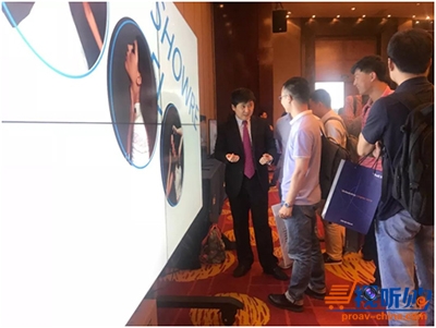 NEC(中国)有限公司显示产品解决方案事业部显示器高级销售经理关思舟为在座嘉宾重点介绍了某国际知名服装品牌百台拼接屏的经典案例。该门店采用了X554UNS 、X464UNS 共计百余块,安装在三层旋转楼梯处,位置复杂,实施难度大。此外还要保证数百台显示器显示一致、稳定,NEC的硬件校色系统全面保证了大规模拼接时拼接墙色彩的一致性,且所有色彩都可以进行数字化校准,且配合其强大的工业品质,为用户的展示提供了更加强有力的保障,让该项目大放异彩。