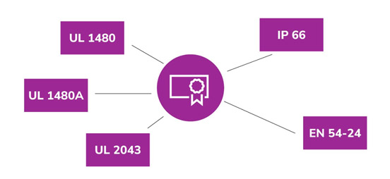 在户外或工业环境中,扬声器不仅要“声音清晰”,更要“经久耐用”。全新一代号角扬声器系列采用坚固耐候材料设计,适用于多种环境条件,兼顾防护性能与长期稳定运行能力。同时,产品符合相关紧急广播标准(如EN54-24等),满足公共广播与语音报警系统在法规与安全层面的要求,为项目落地提供合规保障。