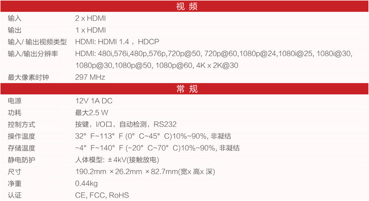HDMI 2切1自动切换器