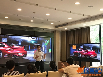 现场,Prysm(溥美)副总裁兼大中华区总经理李晓明先生为观众演示了85英寸及190英寸的Prysm(溥美)视觉工作环境之间流畅的镜像协作、全方面多人互动功能。
