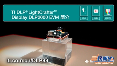 自1996年以来,德州仪器公司的DLP显示技术屡获殊荣,为全球顶级的显示设备提供色彩丰富、对比鲜明、高清靓丽的优秀画质,已广泛应用于包括智能显示技术在内的各种装置,包括工业、汽车、医疗和互动投影等各种应用。从影院(DLP Cinema®)到大型专业展厅,从会议室、教室到家庭影院,DLP技术都贯穿其中。此外,DLP Pico™使移动设备能够在您手中轻易地投影出画面。每一块DLP芯片的核心是由微镜所排成的阵列,它们以高达每秒上万次的高速切换。更多信息,请访问www.ti.com.cn/dlp或关注官方微博http://e.weibo.com/tidlp。