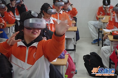 在老师和工作人员的指导下,学生们很快掌握了VR的使用技巧,通过设备进入到全沉浸、可交互、开放式的教学虚拟环境,进行全感官体验式学习。