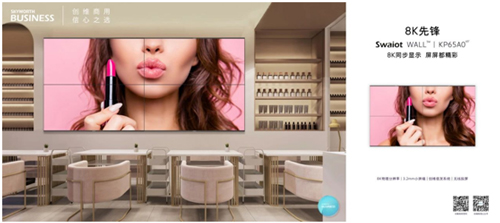 对于商显行业而言,Swaiot WALL™|KP65A0上采用的2×2拼接方案,为行业实现8K超高清显示提供了不同以往的解决思路,进一步降低了8K的技术门槛和成本门槛,有助于8K商显的加速普及。