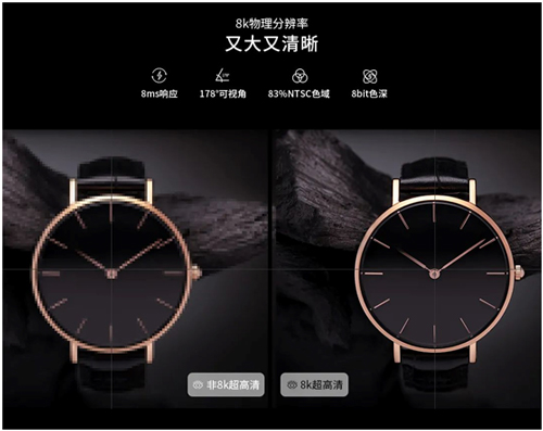 在8K分辨率下,由于像素数量显著增加,我们视网膜感受到的画面会更平滑、边缘更锐利,让我们可以更好的区分画面的前景和背景,捕捉画面焦点,再配合130吋超大尺寸,使物体呈现更具有视觉冲击,这便是8K大屏带来的沉浸式画面体验效果。