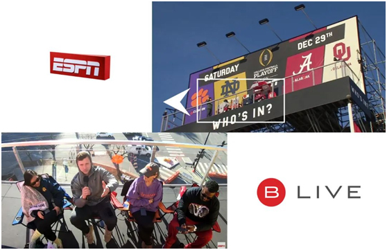 由B Live制作总监 Jay Kopelman设计,一场别开生面的创意直播“谁是大赢家?”,13x24h与全球各地的足球迷们实时互动,见证4个超级球迷在ESPN户外24米高空广告屏上的对决,猜一猜谁的的球队胜出,谁会笑到最后。