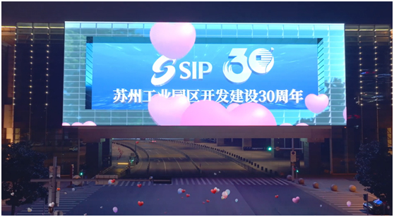 金鸡湖畔,科技与艺术完美融合。点亮后的大屏不仅呈现了中国和新加坡两国间旗舰合作项目——苏州工业园区30年来的蓬勃发展,还展现了苏州这座创新之城的独特魅力。