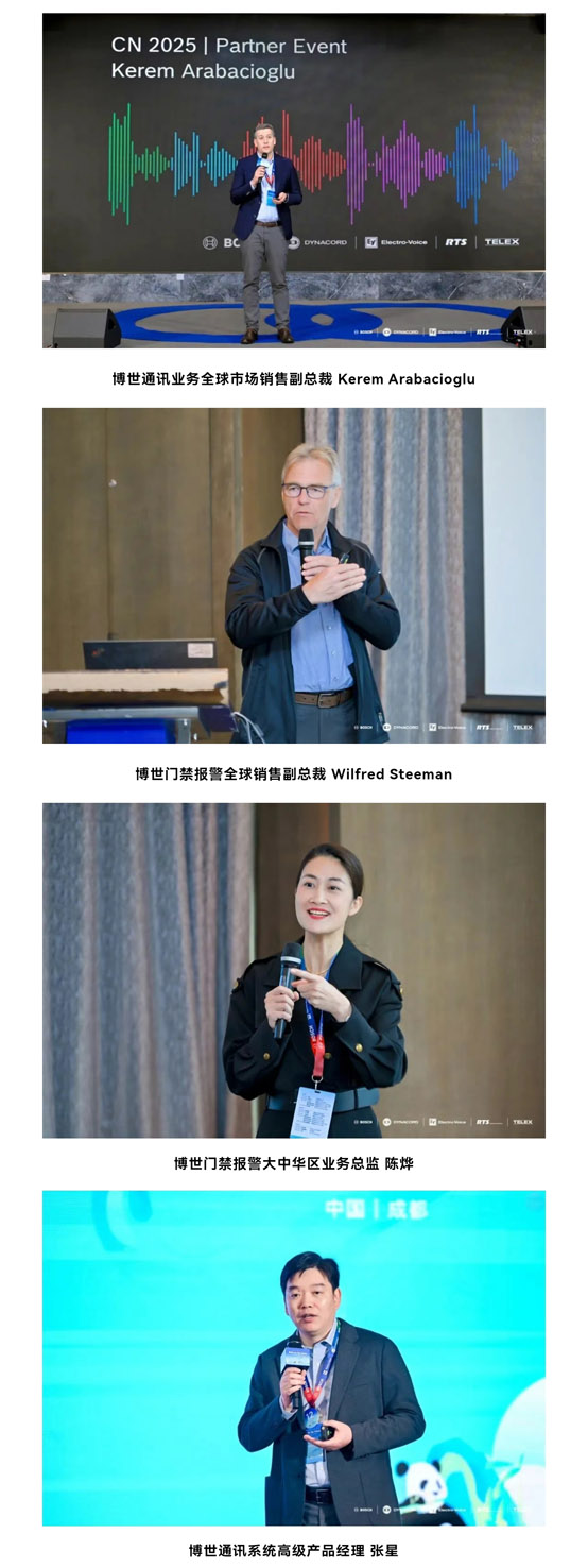 在通讯系统与门禁报警分会场,博世通讯业务全球市场销售副总裁 Kerem Arabacioglu与博世门禁报警全球销售副总裁 Wilfred Steeman分别深入剖析了行业与公司全球市场动态与未来计划。各事业部领导、同事分别为与会嘉宾全方位呈现了2025 年度产品市场规划蓝图,解读市场营销的主导方向与关键重点。