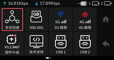 聚合靠多网络链路协同,缺一条网速直接打折扣!先开启多径加速开关,在设备屏幕上,检查各链路状态: