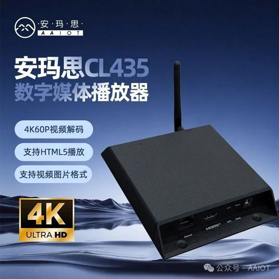 安玛思CL435是一款出色的数字标牌,具有卓越的视频播放、高动态运动图形功能和灵活的USB接口,可满足大多数标牌项目需求,同时具有商业级操作系统,可随时随地为实时播放器提供云连接体验,为所有数字标牌服务提供真正的4KHDR视频和HTML5性能的完美体验。