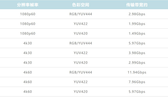 举例:4k60 4:4:4 8bit视频传输带宽为: