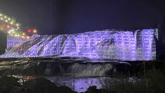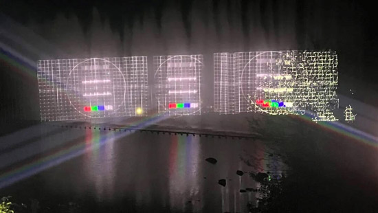 硬核防护并行: 施工采用模块化分组作业,并为投影机集成IP65防护箱、冷却及防雷系统,确保在临水、高空环境下的稳定性与施工效率