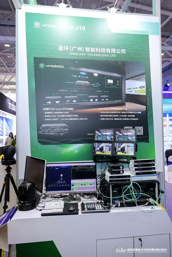 VINGLOOP作为国产的AV-over-IP交换机,是整个系统背后的无名英雄,默默支撑着各种协议的运行。无论是DanteNDI、还是SDVoEVINGLOOP交换机都能够做到零配置即插即用。让我们跟随镜头去找寻会场中的VINGLOOP吧,一起见证AV-over-IP交换机的「硬件制造国产化」、「技术标准国际化」与「市场部局全球化」。