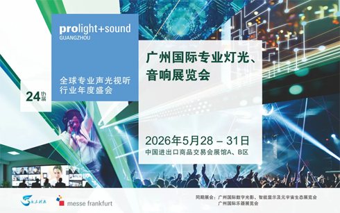 备受瞩目的第24届广州国际专业灯光、音响展览会 (下称广州展) 将于2026年5月28 – 31日在中国进出口商品交易会展馆A、B区举办!在专业声光与视听领域深耕23载,广州展已成为全球规模最大、品牌影响力最强的行业盛会。