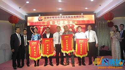 【专业视听网报道】:羊舞丰收岁,猴吟锦绣春,2016年1月17日晚,在这辞旧迎新之际,深圳市维冠视界科技股份有限公司在深圳民都国际大酒店盛大举行以“融合梦想,赢在未来”为主题的2016迎新年会暨上市庆功晚会,维冠视界全体员工、各分公司、办事处及加盟办事处、供应商及合作伙伴欢聚一堂,共迎新春。