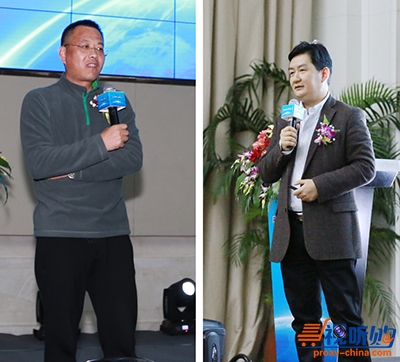 山东鲁信院线合伙人、中国绵阳中环影城总裁王征(左)、福建中瑞影视股份有限公司总裁吴云通(右)现场分享优质经验)