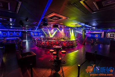 11个主扬声器全部采用12”两分频EVF-1122D,其中8个悬装在吧台天花板上向外扩音,覆盖舞池、VIP包厢和分散在室内的卡座。另外3个扬声器,2个指向舞台,1个专用于DJ间。