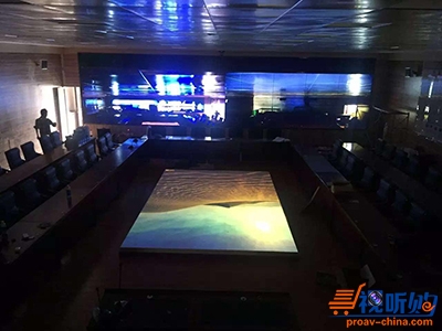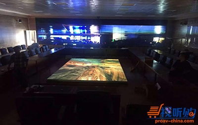 某部队作战指挥室。由3台智酷系列激光工程投影机所搭建的巨大电子沙盘,实时高清晰度的显示战场的态势图,为指挥作战提供了第一手的信息。