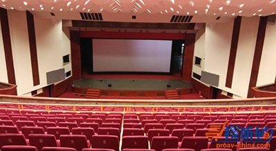 礼堂整体长30多米,宽20多米,距顶高10米,带二层眺台,主扩直达声不能均匀覆盖一层后排听众。观众区呈梯形排列,扩声系统必须调整指向性控制;舞台台口较宽,主扩系统需采用LCR立体声设计覆盖全场;另外剧场的整体建造庄严大气,新的音频设备安装时要最大程度保留原始风貌。