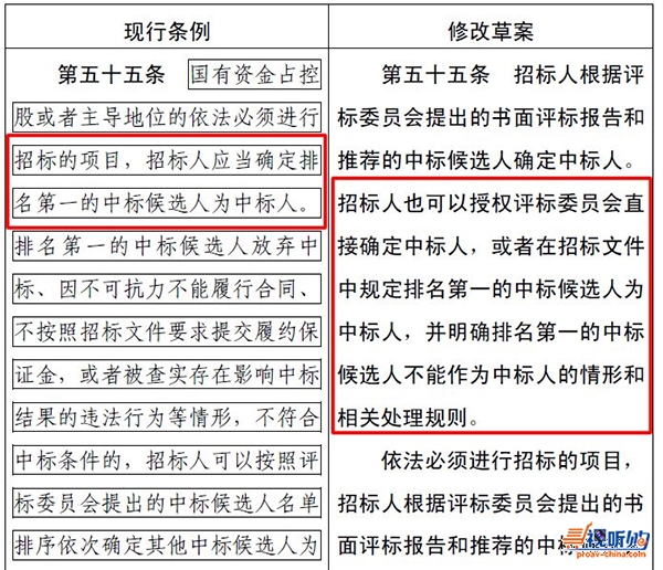 其中,最受大家关注的一点是:招标人可以直接确定中标人。该条修改前后对照如下: