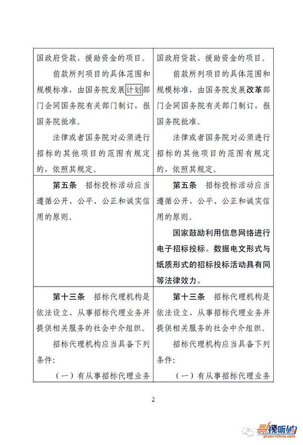 以下是《招投标法》和《招投标实施条例》修改前后对照表,请大家转发保存: