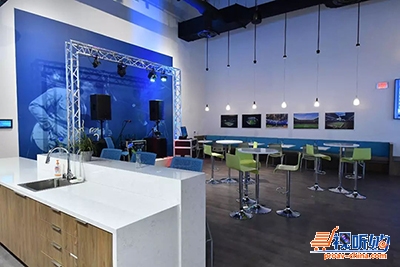 咖啡厅、董事会议厅和培训中心可谓身兼多职,不仅正在实际使用,同时还充当了餐厅、企业和教育等哈曼专业应用解决方案的展示区。