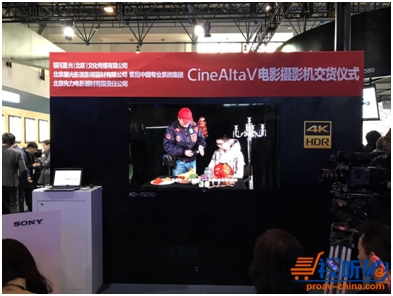 3月23日,在CCBN 2018(第二十六届中国国际广播电视信息网络展览会)的4号馆索尼展位上,索尼中国专业系统集团与银河星光(北京)文化传播有限公司、北京星光影美影视器材有限公司、北京先力电影器材有限责任公司三家机构进行了CineAltaV数字电影摄影机的交货仪式。这是继去年9月该款机器发布后,首批面向中国用户正式交付。