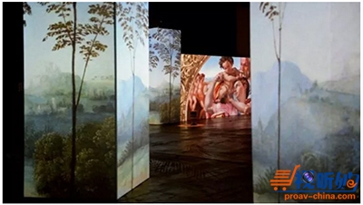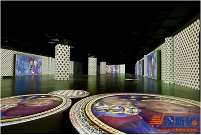 总的来说,这是一个三维立体投影画面包围的沉浸式观展环境