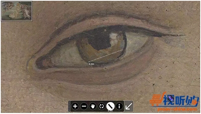 作品图片最高可达100亿像素值的极高的分辨率,作品细节可通过设备放大选取,观察到平时画作肉眼不可见的细微之处。
