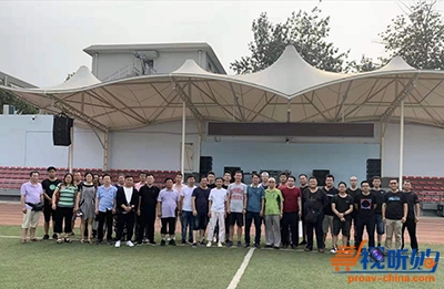 7月28日下午,大家顶着38~39度的高温到体育场听音感受点声源扬声器与线声源扬声器扩声效果