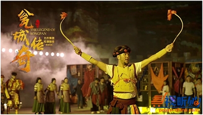 《大唐松洲·瓮城传奇》是由四川阿坝自治州松潘县委与力方集团联合创作,展现千年松洲历史、弘扬民族文化的大型沉浸式实景秀。故事背景发生在公元638年七月,吐蕃赞普松赞干布进攻松洲,开启了世界历史上最为著名的“为爱而战”的千年传奇,也造就了“汉藏和亲”流传千古的佳话。