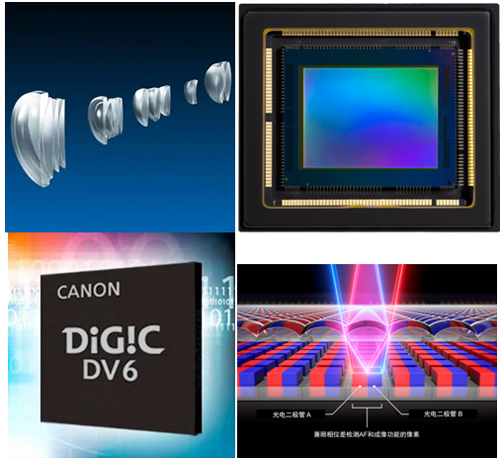 15倍光学变焦镜头、支持4K的1.0型CMOS传感器、DIGIC DV 6影像处理器及全像素双核CMOS AF等与专业摄像机相同的核心部件及技术