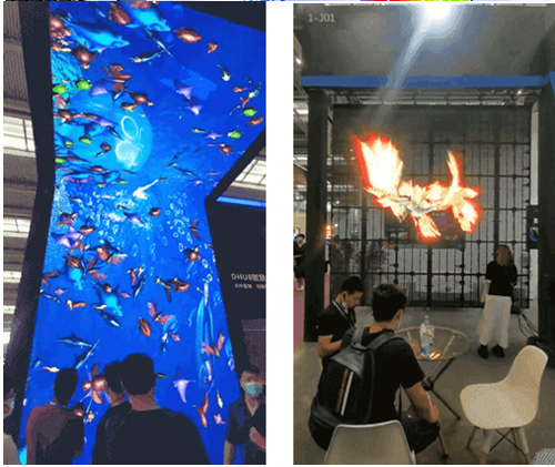 炫酷的裸眼3D大屏、动感绚丽的异形屏、光怪陆离的艺术装置在眼前闪现,地板上的屏幕流光溢彩,耳边欢快的节奏,令人完全沉浸在充满未来感和科幻感的空间中。
