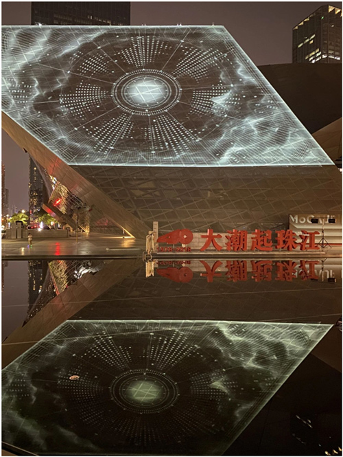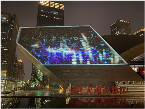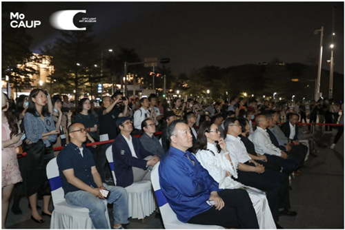 2021年4月23日晚,深圳市当代艺术与城市规划馆(以下简称“两馆”)西广场建筑外墙和水面空间光影流动,吸引许多市民驻足观看,“目光深圳——城市光美术馆首映式”隆重开幕。首映活动由深圳市当代艺术馆、城市规划馆与城市光美术馆主办,城市光艺术中心与V-studio科技艺术工作室承办,深圳市专家人才联合会与深圳市新媒体公共艺术委员会协办,深圳市声光行科技发展有限公司与深圳市科迈信息技术有限公司支持。
