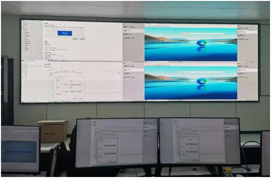 现场实际应用中,结合云媒体交互拼接系统强大的信号接收和图像处理功能,完美融合了多种格式信号源的接入,配合现场管理电脑双屏双显卡输出模式设置,保证本地显示器1080P的图像显示,同时通过大屏拼接处理技术,显卡扩展模式下4K输入至大屏显示,既保证了操作席正常坐席管理,又实现了可视化超高清显示。