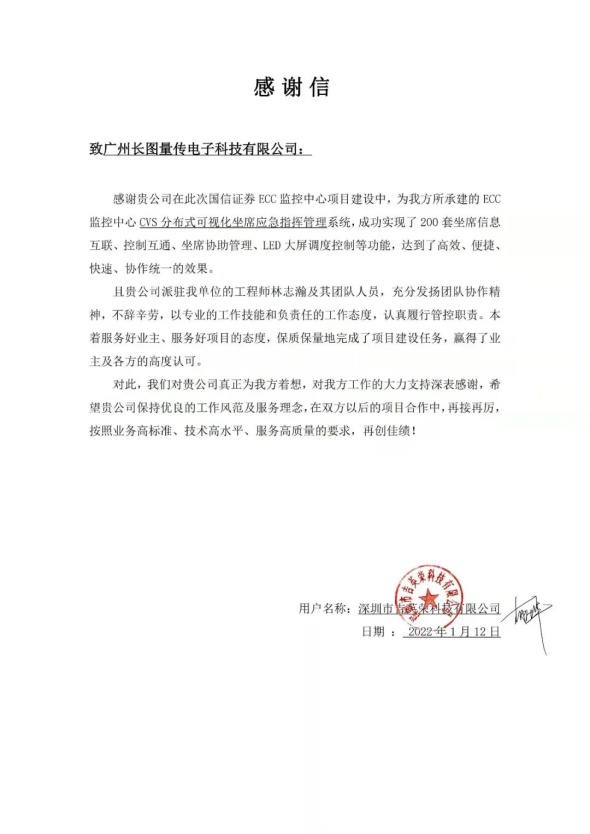 该项目在建设过程中,长图工程师秉承专业的工作技能和负责任的工作态度,认真履行该项目的管控职责,保质保量地完成了项目的建设任务,赢得客户的高度认可。