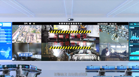 大范围全景可视化:全厂区360°全景监控,可视化部署,高精度定位,可采用鹰眼、无人机等对大场景进行监控,长图CVS平台快速接入系统画面,轻松实现分屏、拼接、漫游等功能。