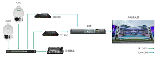 此次A200在恐龙王国的实际应用中,与Full NDI编解码器(BirdDog Studio),控制键盘(BirdDog PTZ Keyboard)组合,将高质量、低延时画面经矩阵传输至户外超大屏。