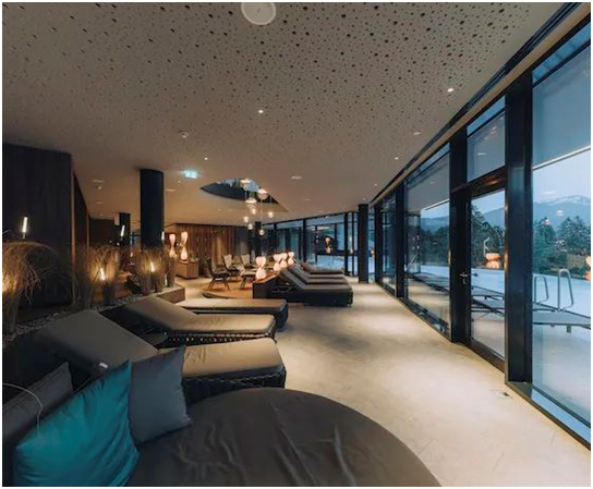 现在,除了包括无边界泳池、美食佳肴和阿尔卑斯山户外活动在内的一系列健身选择外,客人还可以通过自己的常用移动设备定制专属音频体验。随着愿景的实现,Fernblick Montafon 酒店的客人可以一边欣赏阿尔卑斯山的壮观景色,一边聆听适合当下时刻的美妙音乐,幸福感爆棚。Fernblick Montafon 酒店拥有现代感十足的声音环境,可以在未来多年为客人提供无与伦比的款待体验。