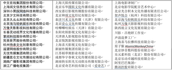 投资公司、影视基地、戏剧院、歌剧院、政府机构、网红、代理商、经销商