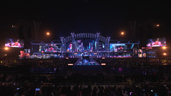 在五源河体育场这种超大型场地里,物理空间本身就是机位排布的敌人。更何况,宇宙时光列车站的舞美设计高度强调全景的沉浸感与AR视觉的完整性,这意味着现场的机位部署必须在触达率隐形化之间寻找平衡。